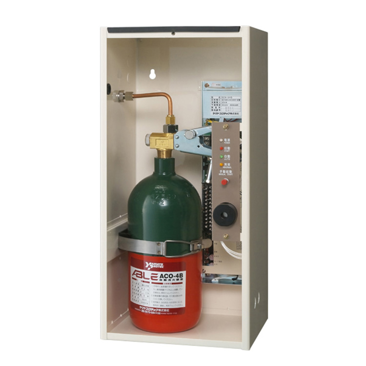 近年、目覚ましい発展を見せる産業機器は、電子機器によってコントロールされ、省力化、無人化が進んでいます。そんなさまざまな産業機器に対して優れた消火性能を発揮する、小型の全自動消火システムとして開発されたのが、自動消火システムABLE(エイブル)です。産業機器の特性に合わせ3種類(二酸化炭素・泡・粉末)の消火薬剤を選択できます。