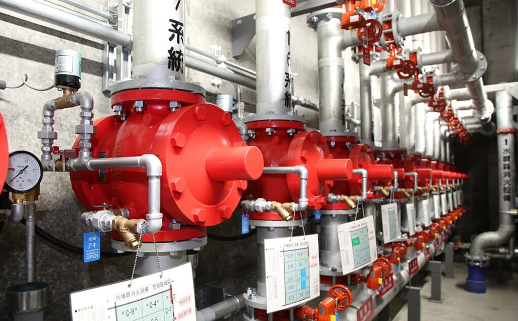 今回、苫東バイオマス発電所の燃料中間貯蔵棟に設置した水噴霧消火設備は、水を霧状にして放射し、急激な蒸発作用による冷却効果で消火するシステム。電気火災や油火災にも有効な消火設備で、指定可燃物を貯蔵する場所への設置にも適しています。